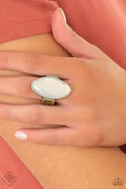 Featuring a dewy iridescence, an oversized white opal bead sits atop a sleek brass frame for an ethereally rustic fashion. Features a stretchy band for a flexible fit.